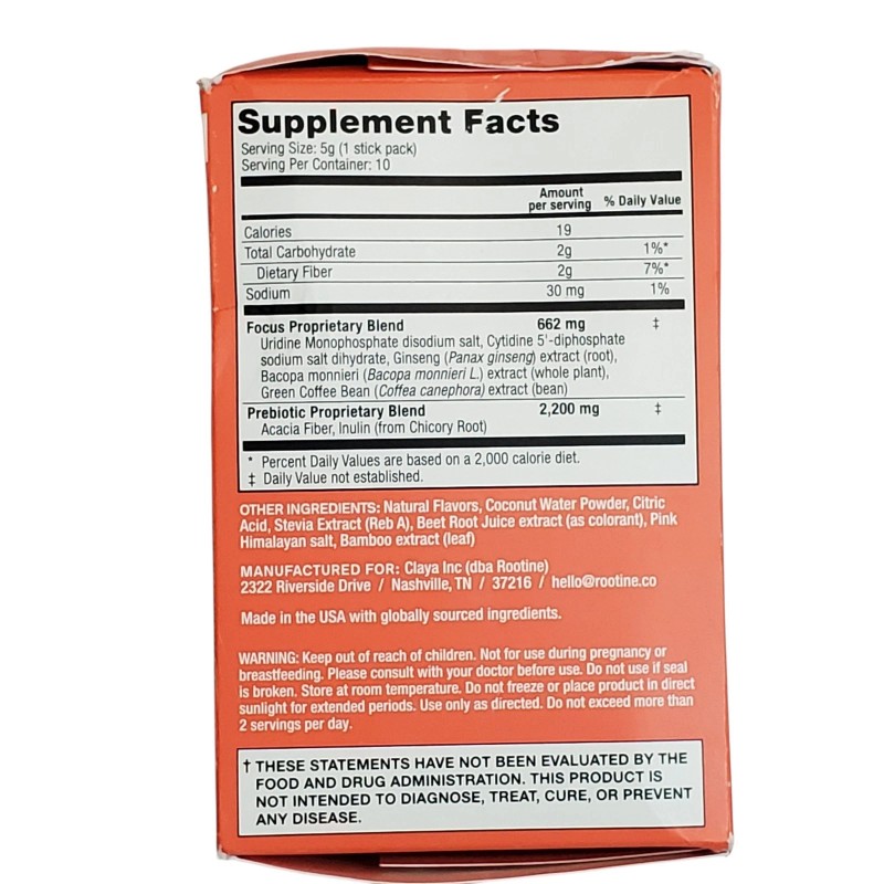 Rootine Focus Brain Support Drink Mix Raspberry Mint 3/2026 Vegan Fast Acting