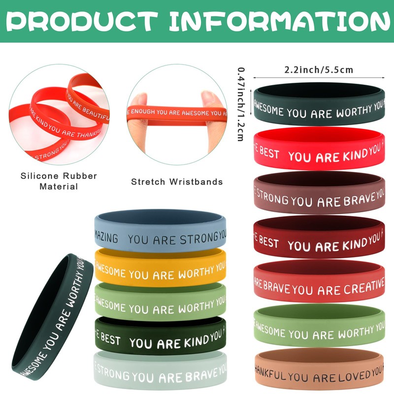 - Wide Applications: these motivational silicone rubber wristbands are suitable for everyday use and wear on various occasions, and can also be utilized as party favors, classroom rewards, student gifts, end of year gifts, summer camp gifts, school prizes, birthday gifts, Christmas gifts, Valentine's Day gifts for your family, friends and classmates to encourage them to stay positive and optimistic