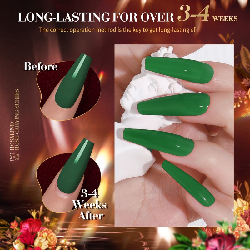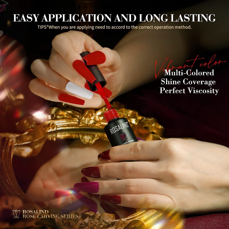 - ROSALIND gel nail polish 8 colors. 8 colors match each other to form a romantic gel nail polish kit and show off a colorful and trendy manicure. No matter all seasons, all occasions or daily, work, party, you can find gel polish to beautify your charming nails. It creates more Christmas atmosphere.
