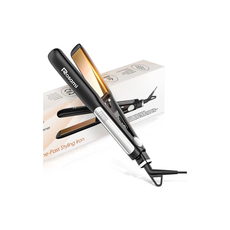 Rosami 2-in-1-Haarglätter aus Titan, Ionisch und Ultra Glanz, schnelles Aufheizen 20 s, LCD-Display für Glätten, Locken und perfekte Wellen