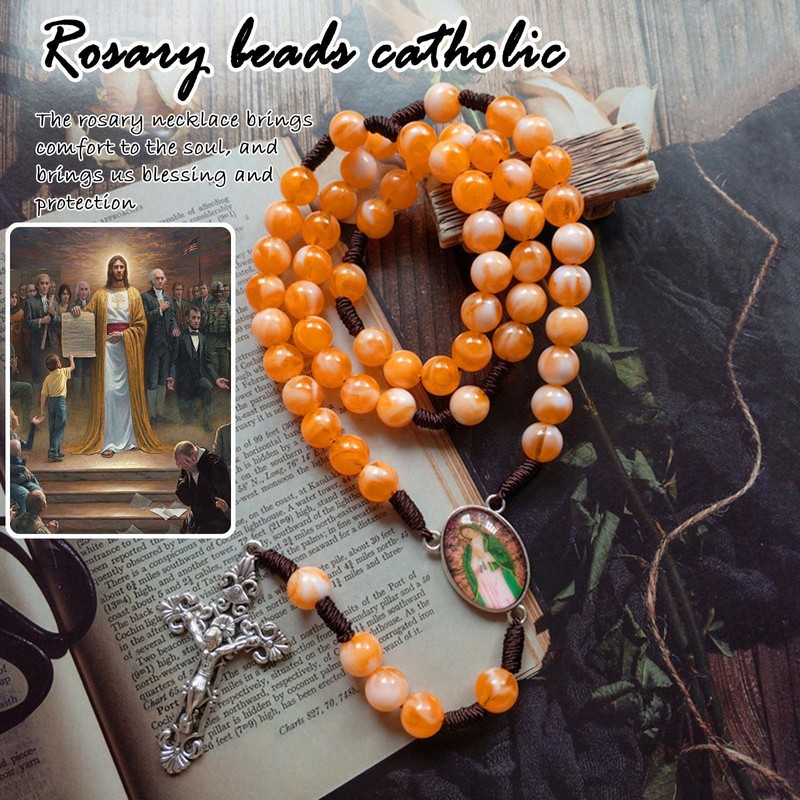 - 【Premium】The cross is made of high quality alloy, the rosary beads are made of smooth acrylic, medium weight, smooth and delicate feel, very comfortable to wear as a necklace or bracelet
