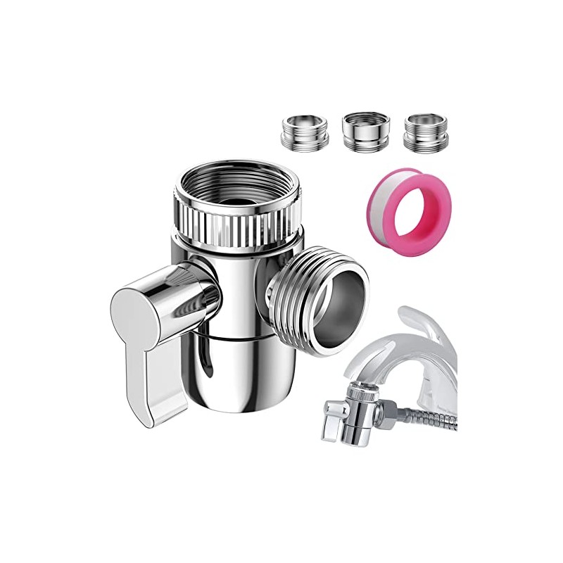 Roscid Roscid Faucet Diverter Valve with Aerator, 3-Way Diverter Valve for Hand Held Shower, Sink Faucet Splitter for Kitchen and Bathroom, with 55/64', 15/16', G1/2 Adapters