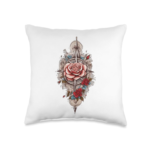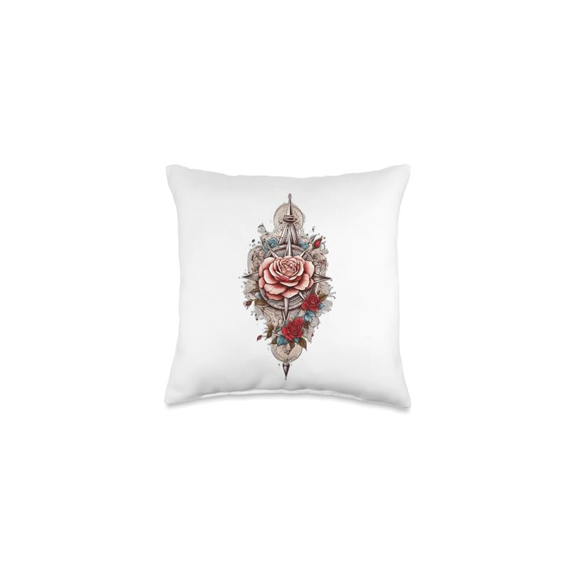 Rose Compass Inspired Blissful Tee Collection. Throw Pillow