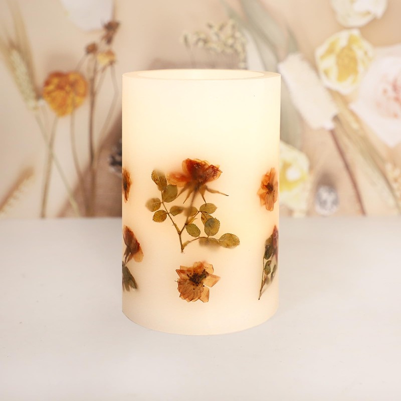 - Realistic Flickering Candle: The 4x6 inch candle is made of real wax and dry rose floral that crafted e-candle using vintage dried rose flowers by hand pouring. Unlike burn candle, battery candle are of reliable quality. Don't worry about them flame or fire hazard.