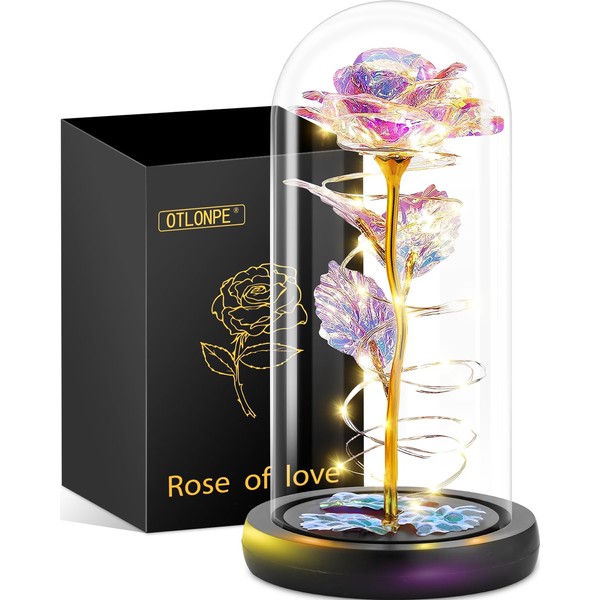 - 🌹What You Will Get: Otlonpe Rose Flower in Glass Dome Gifts for Women, exquisite box, 12 month no worry warranty. If you have any questions, please feel free to contact us. Note: Please do not use inferior AAA batteries to avoid damage to the artificial rose flower.