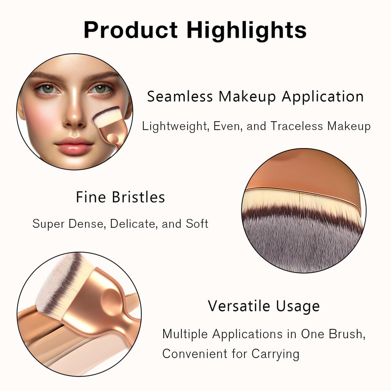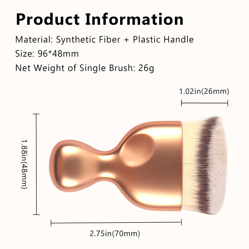 - Set of 2 multipurpose brushes suitable for various cosmetics, including liquid foundation, BB creams, powder, and blush.