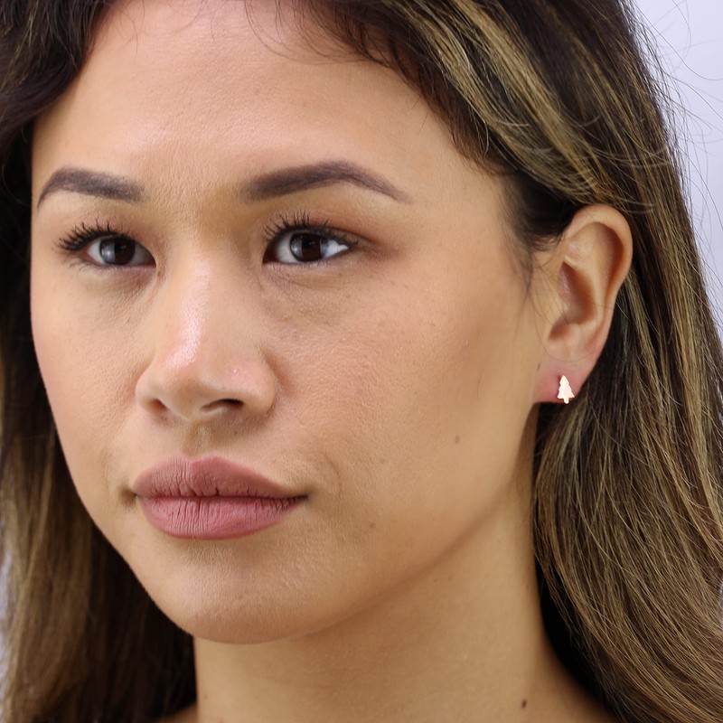Rose Gold Dipped Sterling Silver Christmas Tree Stud Earrings