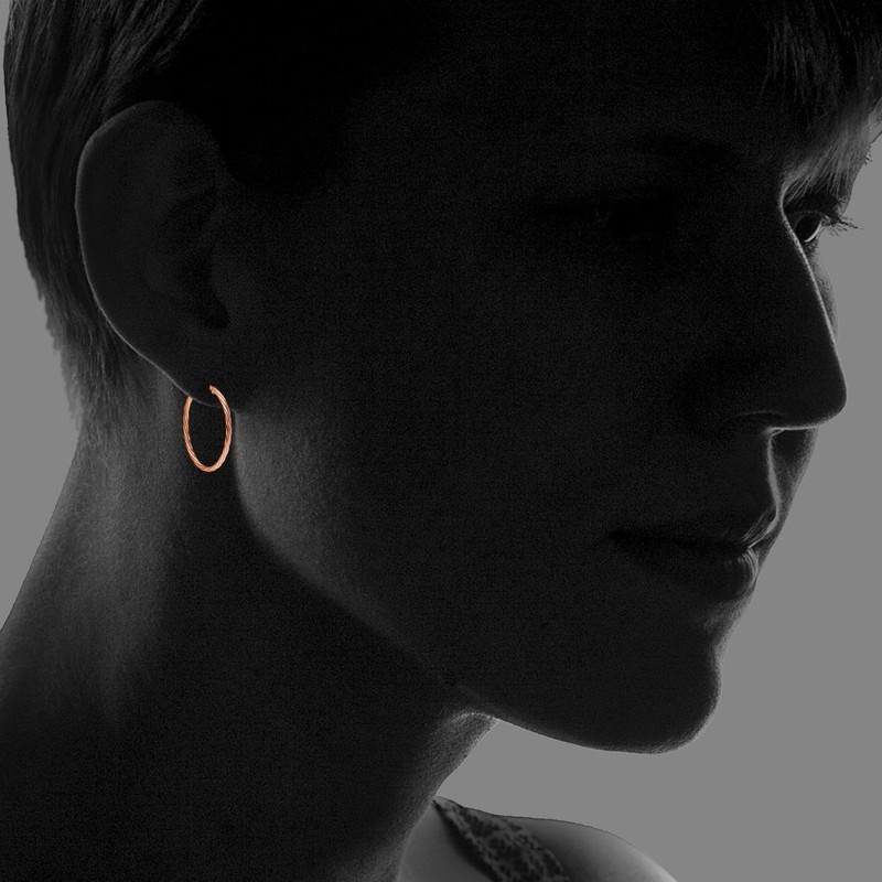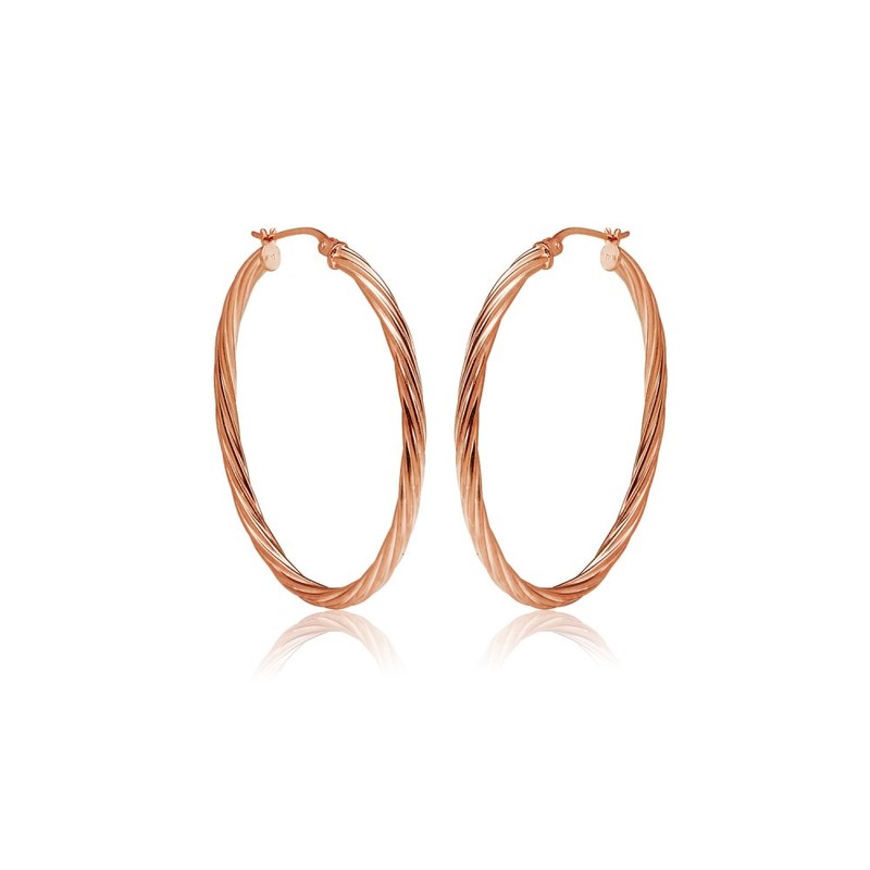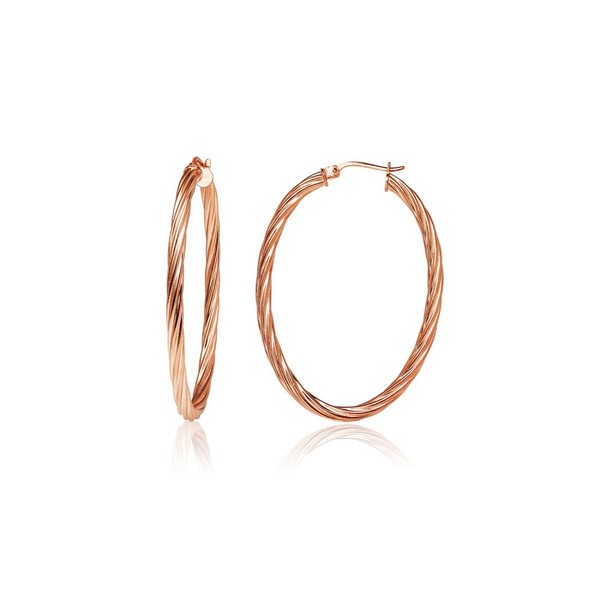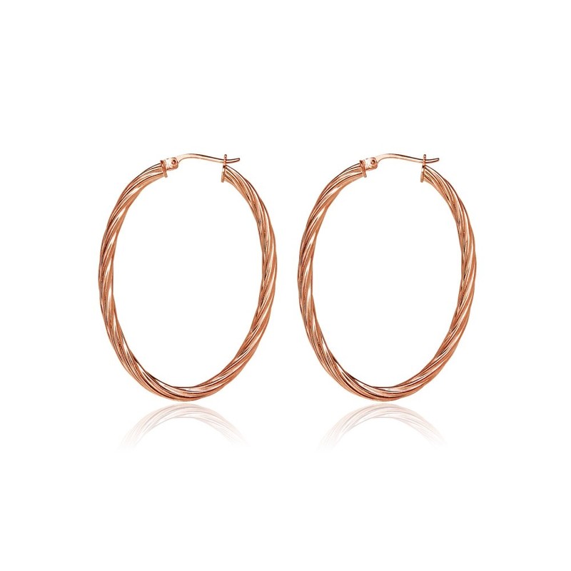 - These hoops are 3mm in the width and 20mm in the length. They are oval shaped and feature a twist design. They are made of .925 rose gold flashed sterling silver.