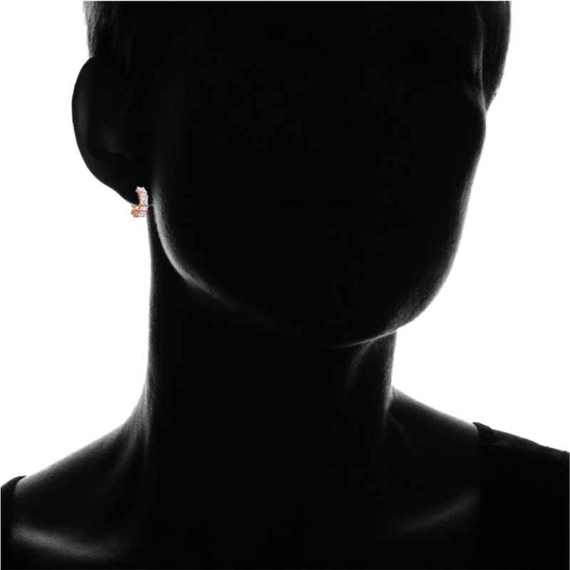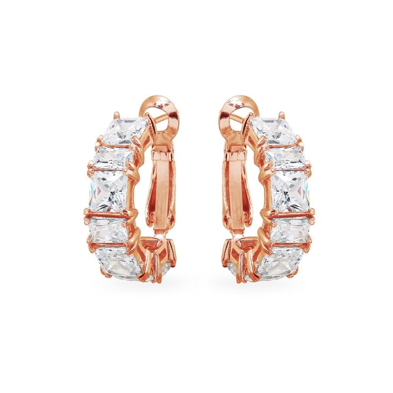 - These classic hoops for women feature princess-cut and rectangle-cut cubic zirconia stones in a stunning 925 silver J-hoop design. Wear these gorgeous hoop earrings as a simple delicate accessory for a beautiful dainty look. These clutchless hoop earrings are crafted of fine rose gold flashed sterling silver.