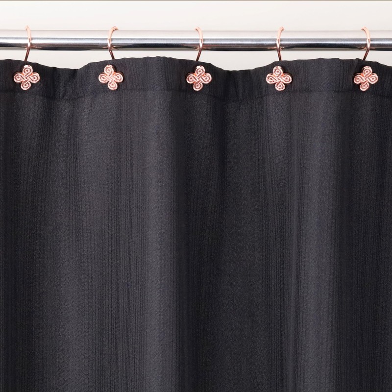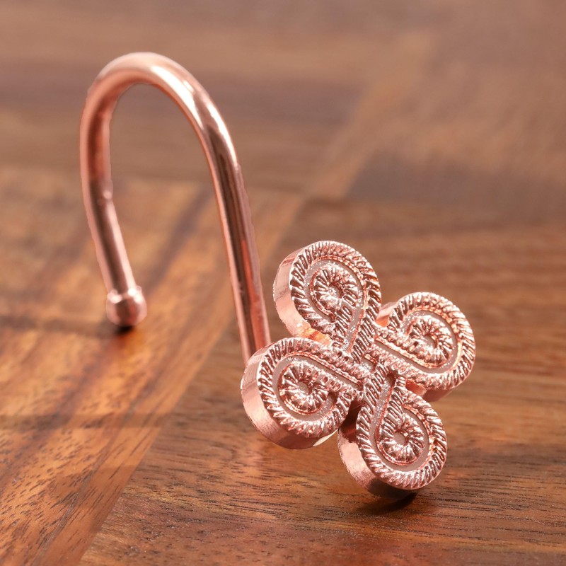 - CUTE DECORATIVE SHOWER CURTAIN HOOKS: these beautiful oil-rubbed rose gold shower curtain hangers, featuring an exquisite flower themed shape design, perfectly match solid color shower curtains and floral themed shower curtains; chic decorative shower curtain hooks can be elegant décor to your bathroom, and they will instantly upgrade the looks of your favorite shower curtain