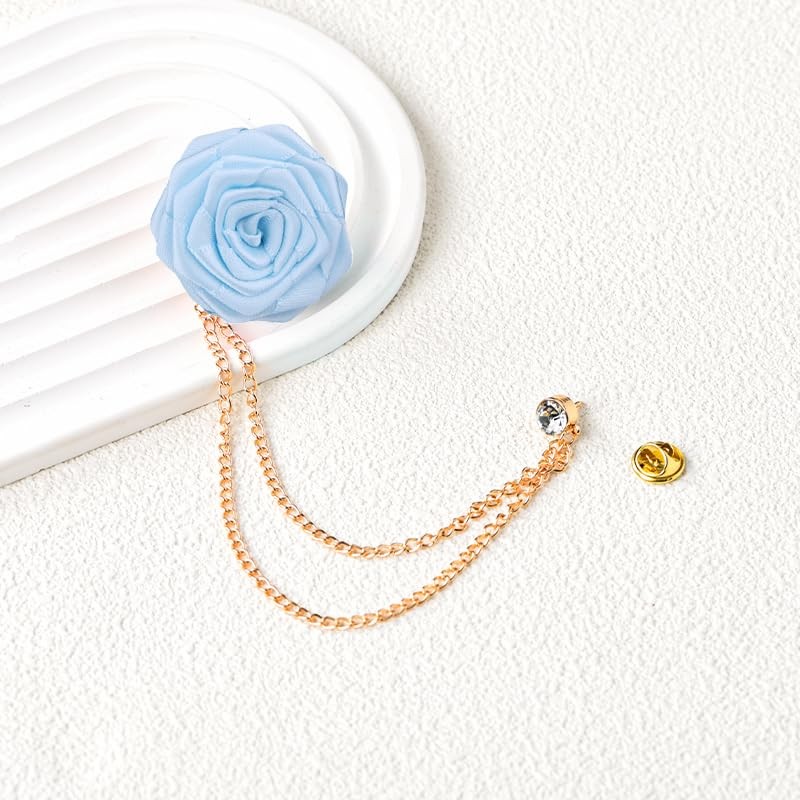 Rose Lapel Pin Tassel Chain Brooch Suit Flower Pins for Men Rose Brooch Pin Bridegroom Wedding Brooches Flower Pin for Men Suit Brooch with Chain Rose Pins and Brooches Light Blue Suit Accessories