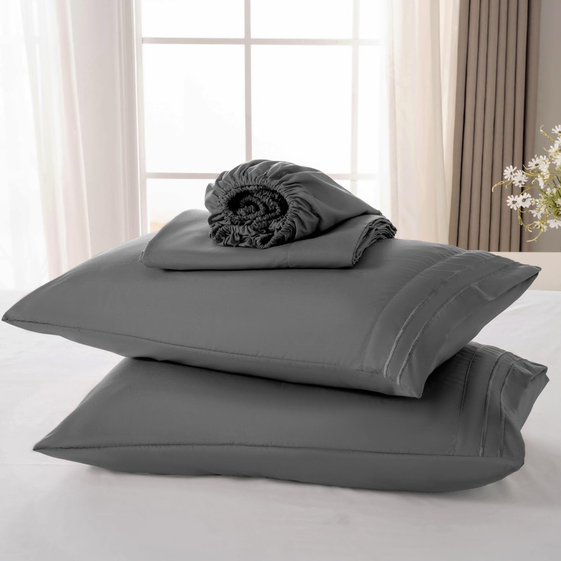ROSE&RISY Dark Grey Full Sheet Set, 4 Pieces Soft Bedding Sheet Set, Breathable and Cooling,Includes 1 Fitted, 1 Flat, 2 Pillow Cases - Deep Pocket (Dark Grey, Full)