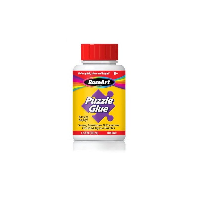 RoseArt Jigsaw Puzzle Glue with Applicator - Saves, Laminates and Preserves Finished Jigsaw Puzzles - Easy to Apply, Dries Quick, Clear & Bright