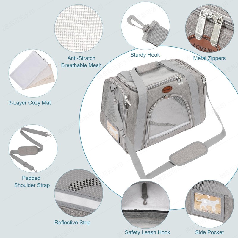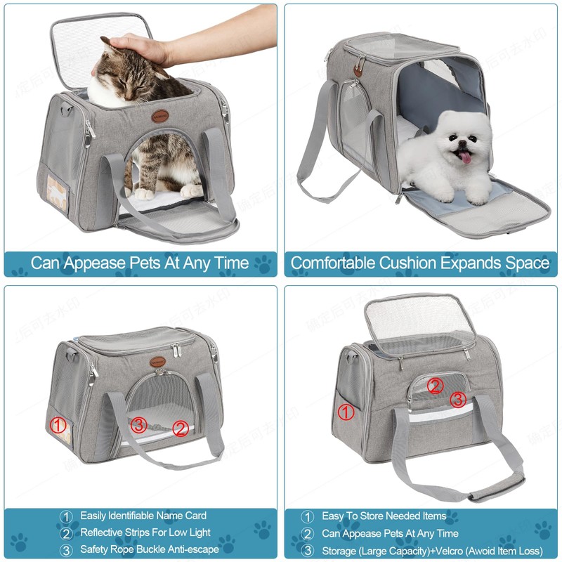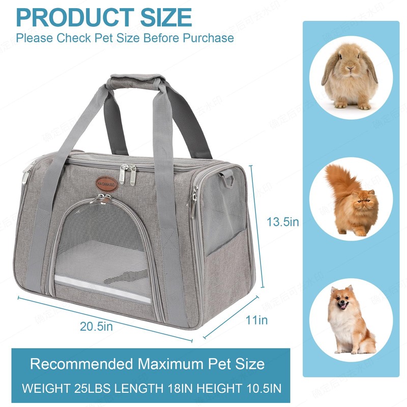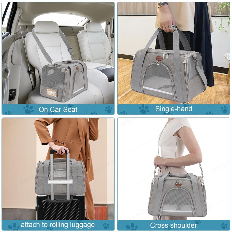 - AIRLINE APPROVED DESIGN:you can take your pet to go to everywhere.This pet carriers provides two connecting loop handles for balanced carrying as a dual seat belt or luggage strap to secure transport