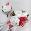 Rosecorsages Triple White Rose on Red Wrist Corsage & Boutonniere Combo