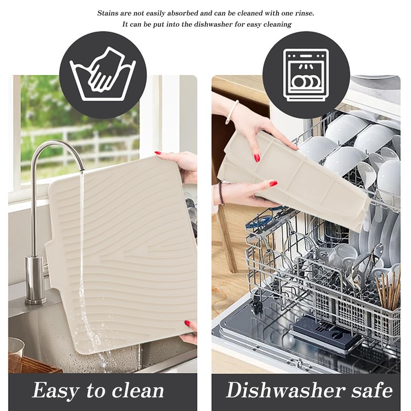 - 【Easy to Clean】: When the dish mat gets stained and needs cleaning, you can wash it with a cleaning agent and tap water or place it in the dishwasher. After cleaning, please air dry it in a well-ventilated area.