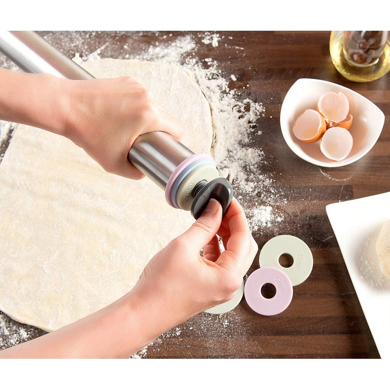 - 2 rolling pins each including 4 pairs of spacers. Pizza dough roller - now roll out the dough evenly for cookies, pizza etc