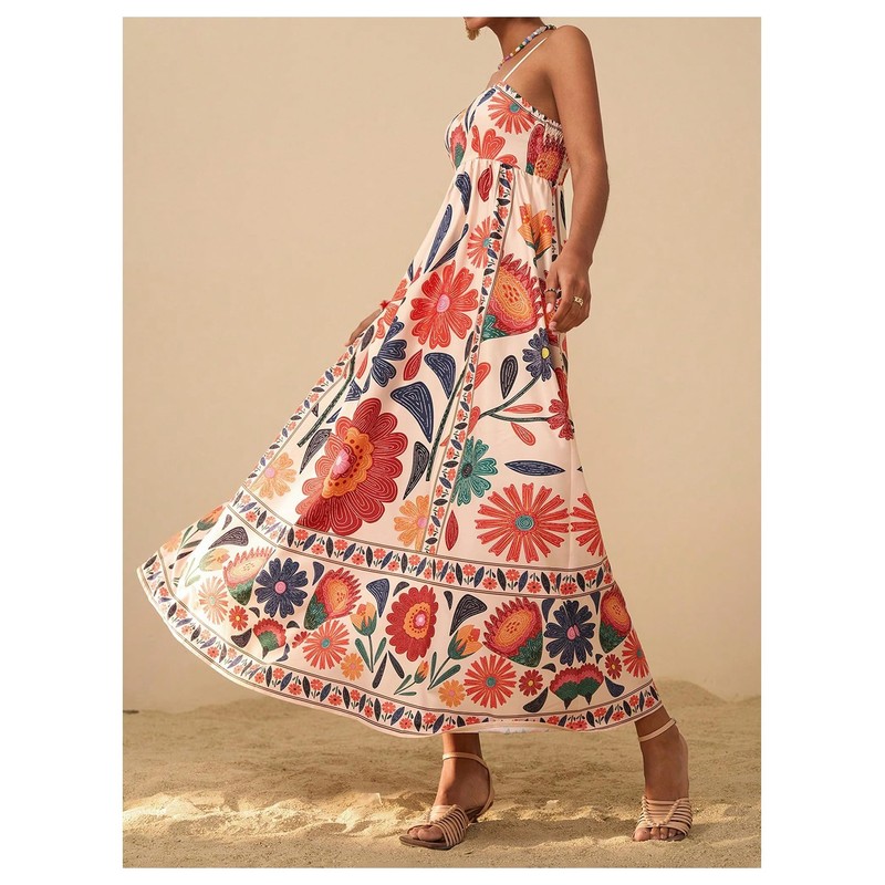 - Features: sundresses for women, floral print, square neck, sleeveless, ruffled hem, maxi, loose fit, boho
