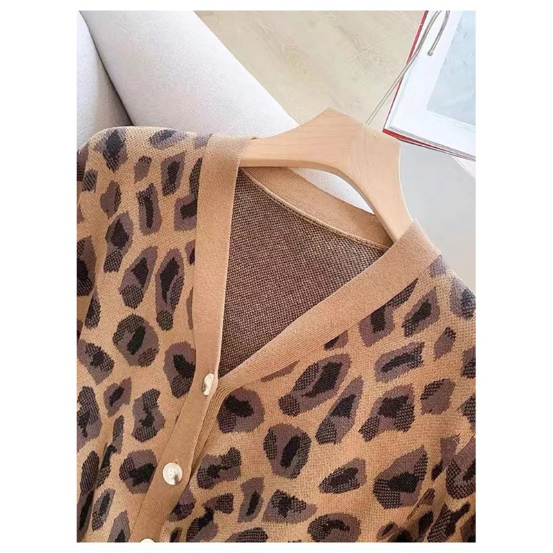 RoseSeek Women's Leopard Button Downs Cardigan V Neck Long Sleeve Knit Sweater Casual Fall Outwear Brown Medium