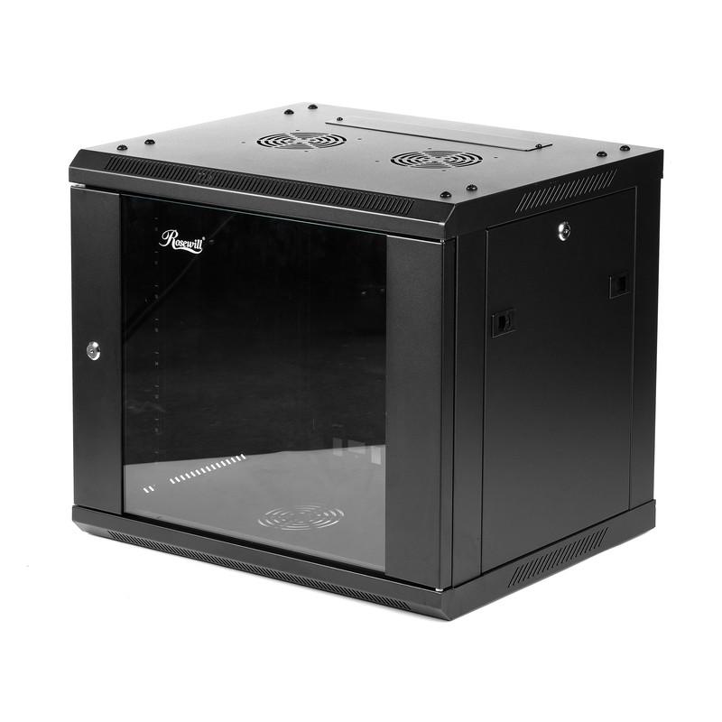 Rosewill 9U Server Rack Enclosure with Glass Door, Locks, & Removable Side Panels Wall Mount Network Cabinet 19 Inch Rack 17.7 Inches Deep Flat-Pack