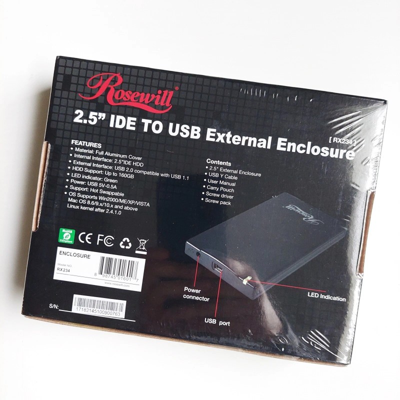 Rosewill RX234 2.5" IDE To USB 2.0 External Enclosure Brand New Still Sealed