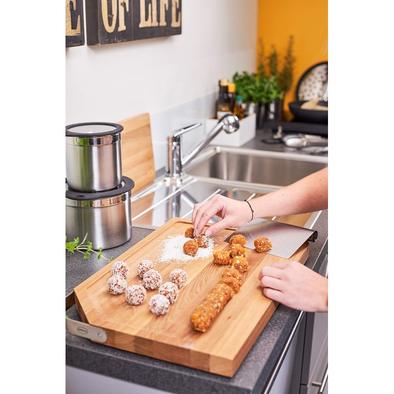 - Length: 15 cm, width: 11.5 cm, height: 2.5 cm, handle length: 2.5 cm, handle diameter: 25 mm, functional part dimensions: 15 cm, material: stainless steel 18/10 matt