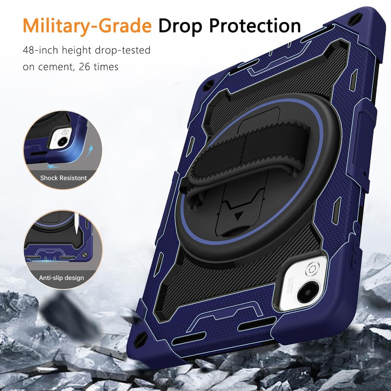 ROSROME for Honor Pad X9a Case 11.5 inch 2025 with HD Screen Protector, Shockproof Heavy Duty Kids Cover with 360°Rotating Stand/Shoulder Strap/Pen Holder for 11.5" Honor X9a Tablet Case, Navy Blue