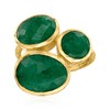 Established in 1952, Ross-Simons presents contemporary styles with a timeless appeal. Bold yet elegant, this ring's green and golden hues add chic contrast to any look. It showcases 12.90 ct. t.w. oval, round and pear-shaped emeralds in textured and polished 18kt yellow gold over sterling silver bezel settings. 7/8" wide. Emerald ring
