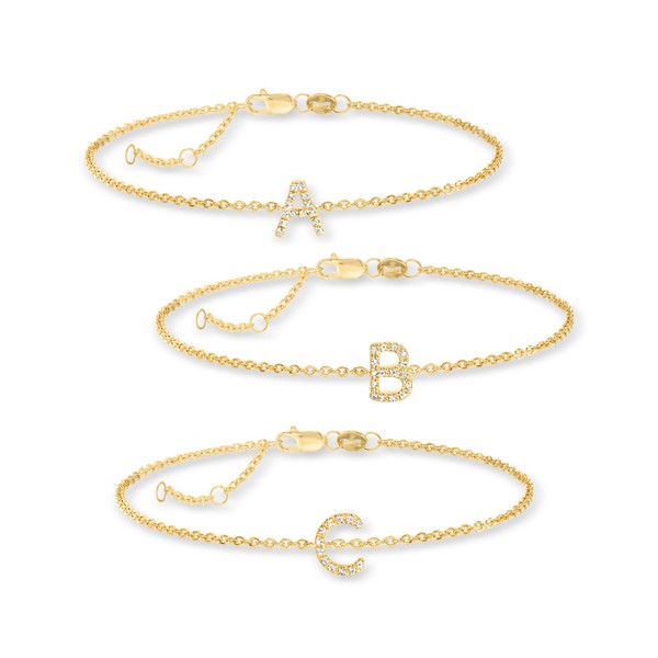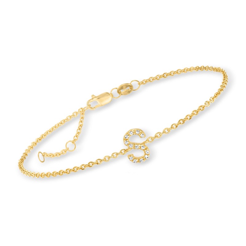 Ross-Simons K - Diamond-Accented Initial Bracelet in 18kt Gold Over Sterling. 7 inches