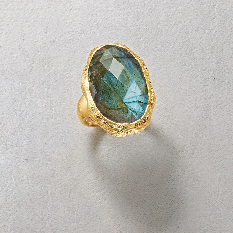 • 18kt yellow gold over sterling silver, labradorite ring for women.