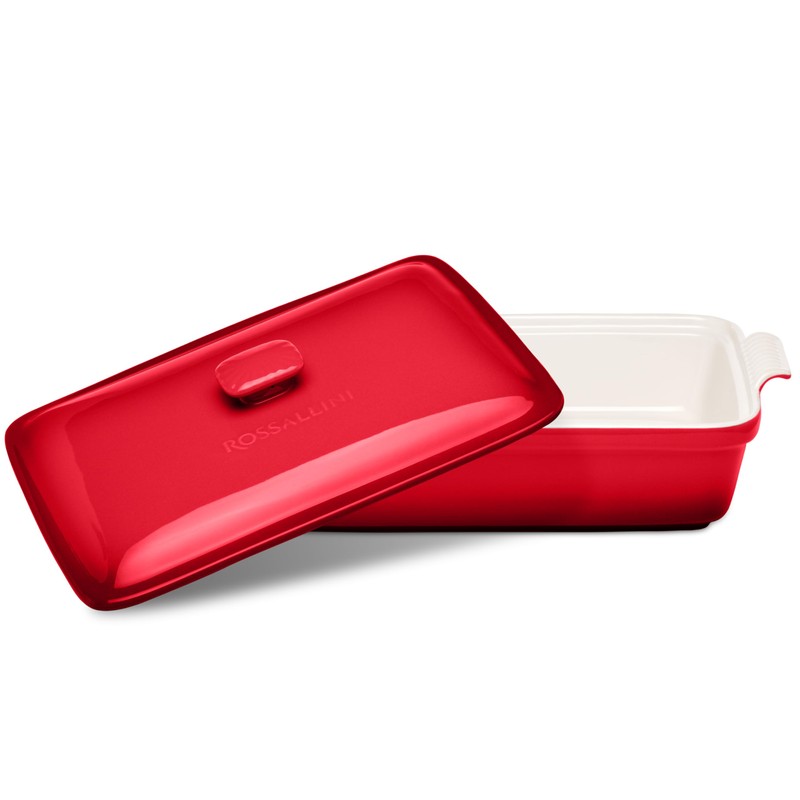 ROSSALLINI Stoneware Casserole Dish Bakeware Set with Lid, Covered Rectangular Dinnerware, Extra Large 4.23 Quart, 13 by 9 Inch, Deep Red