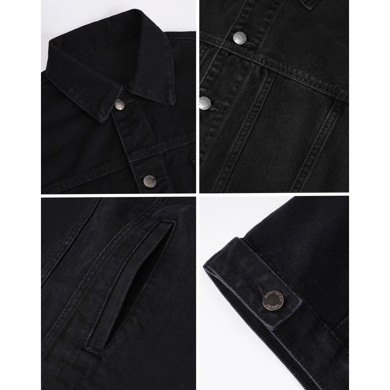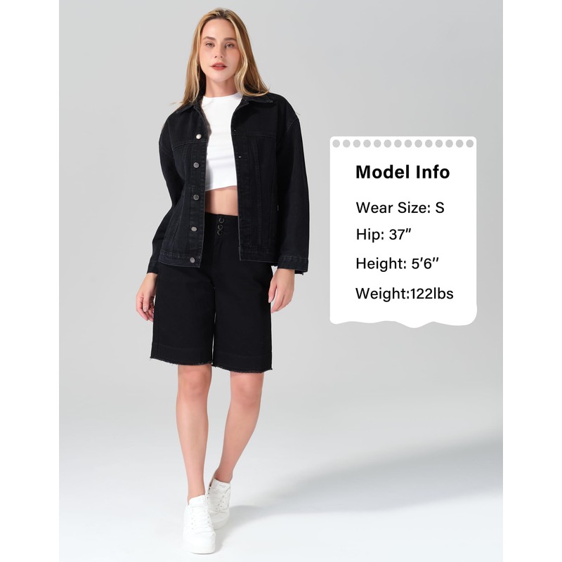 roswear Women’s Denim Jackets Oversized Button Long Sleeve Washed Jean Trucker Jacket with Pockets Black X-Large