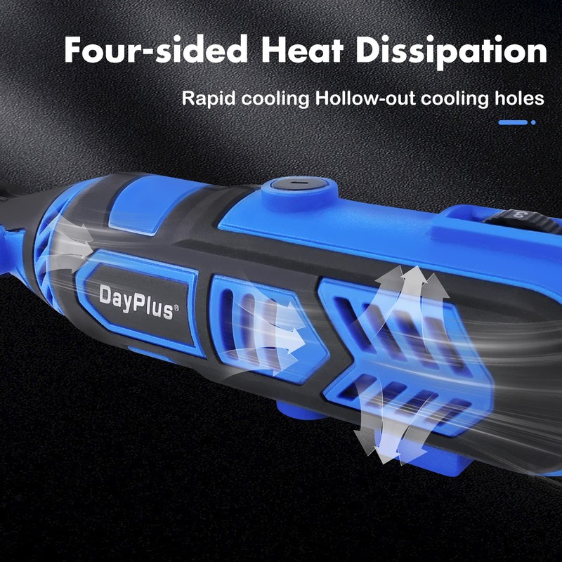 Comfortable and Practical Design - Large vents dissipate heat in time, allowing the rotary tools to run for long periods of time; Spindle locks facilitate quick accessory replacement; Rubber-covered handles provide a comfortable grip for better control.