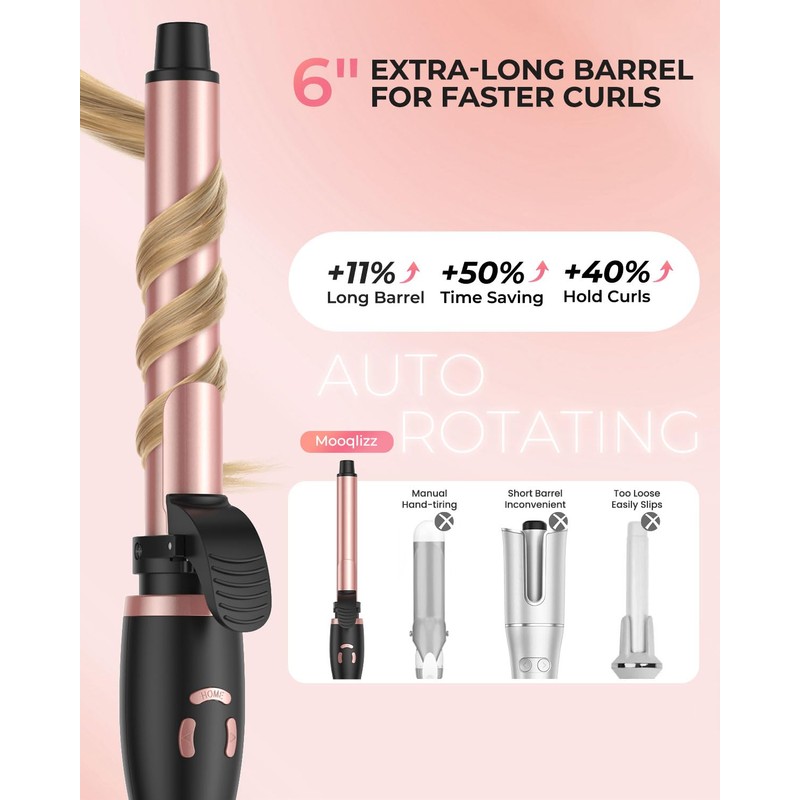 - Quickly Achieve Beach Waves: The rotating curling iron effortlessly style perfect beach waves while saving 50% of your usual styling time. With just the press of a button, your hair wraps effortlessly around the barrel. Perfect for quick, daily styling, this tool delivers salon-worthy results in half the time.
