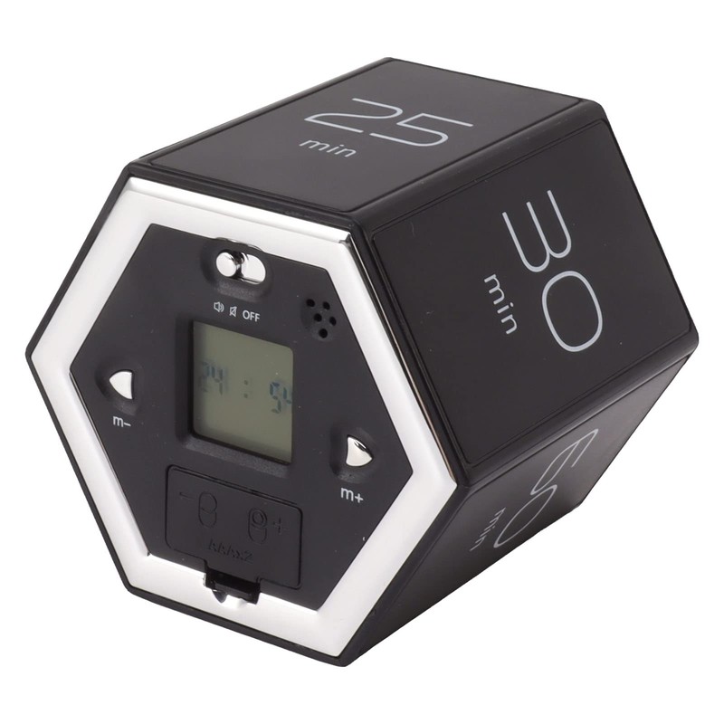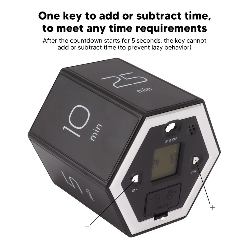 • EASY TO USE: Simply flip to a specific side to preset the desktop timer. If the preset time on the timer is not what you want, you can press M+ or M‑ to add or subtract minutes.