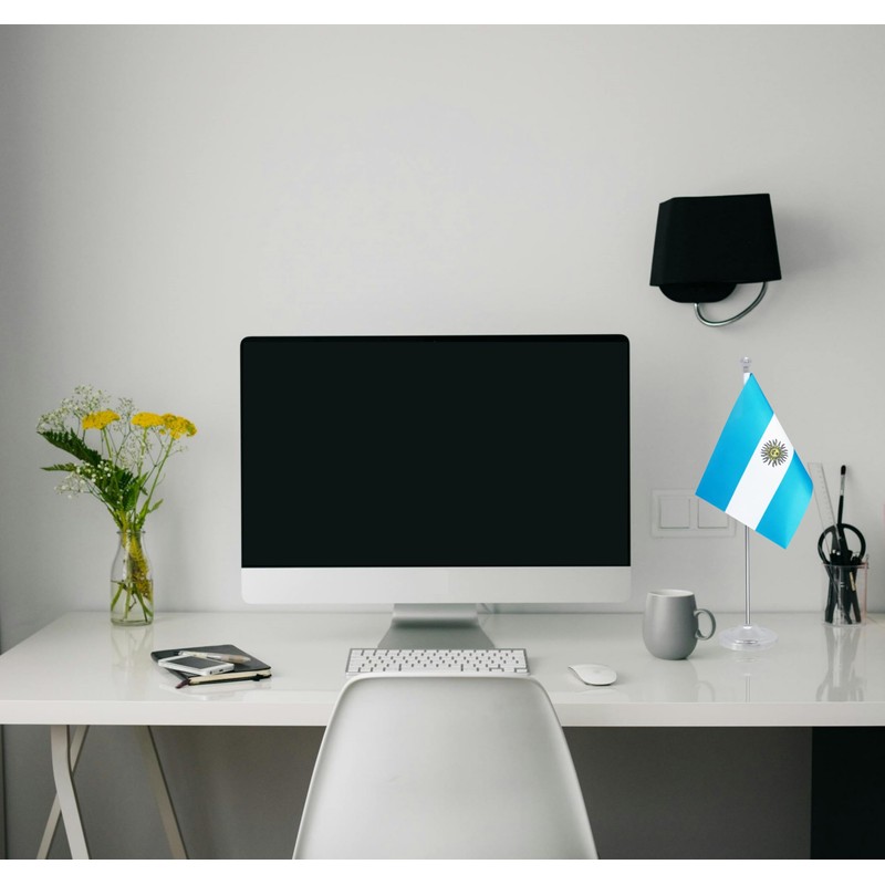 Rotenl Argentina Desk Flag, Argentinian Table Office Flag with Metal Pole and Stand Base, International Country Flags, Festival Event Celebration, Classroom Meeting Desktop Decor (Argentina)