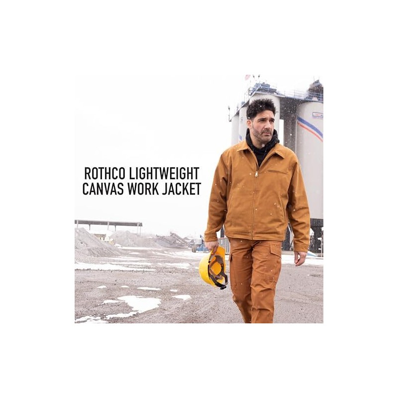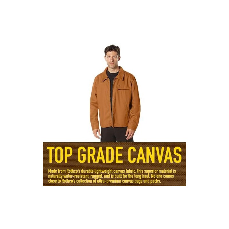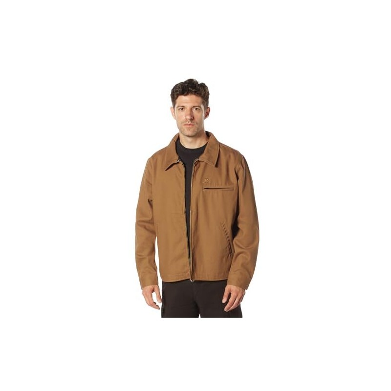 Rothco Brown Lightweight Canvas Work Jacket 92535. Engineered to work alongside you throughout the day, our lightweight canvas work jacket features a hardworking design that delivers unbeatable performance, reliability, and a broken-in fit from the start, allowing you to see any job through, both on and off the clock. From lumberyards to warehouses, this diligent work jacket earns its keep. Long-lasting work ready fabric: like our collection of canvas bags and packs, the work jacket is crafted from a durable 12 oz canvas fabric. This superior material is naturally water-resistant, rugged, and is built for the long haul. These lightweight workwear shirt jackets are tough as nails and will stand the test of time. Storage pockets: the working jacket features 1 chest pocket and 2 front slash pockets, providing additional storage for gear and everyday essentials. Utility at the forefront: these canvas coats feature an antiqued brass zipper and adjustable wrist cuffs for finding the perfect fit.