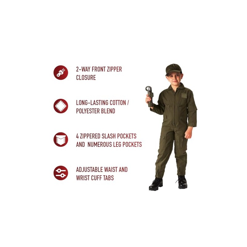 Elevate your little one's playtime with Rothco Kids Air Force Type Flight Suit, the ideal costume for aspiring aviators. Packed with features, this flight suit ensures an authentic and adventurous experience. Let your child's imagination soar with this active-duty inspired suit, complete with authentic details and the comfort they need for endless playtime adventures.