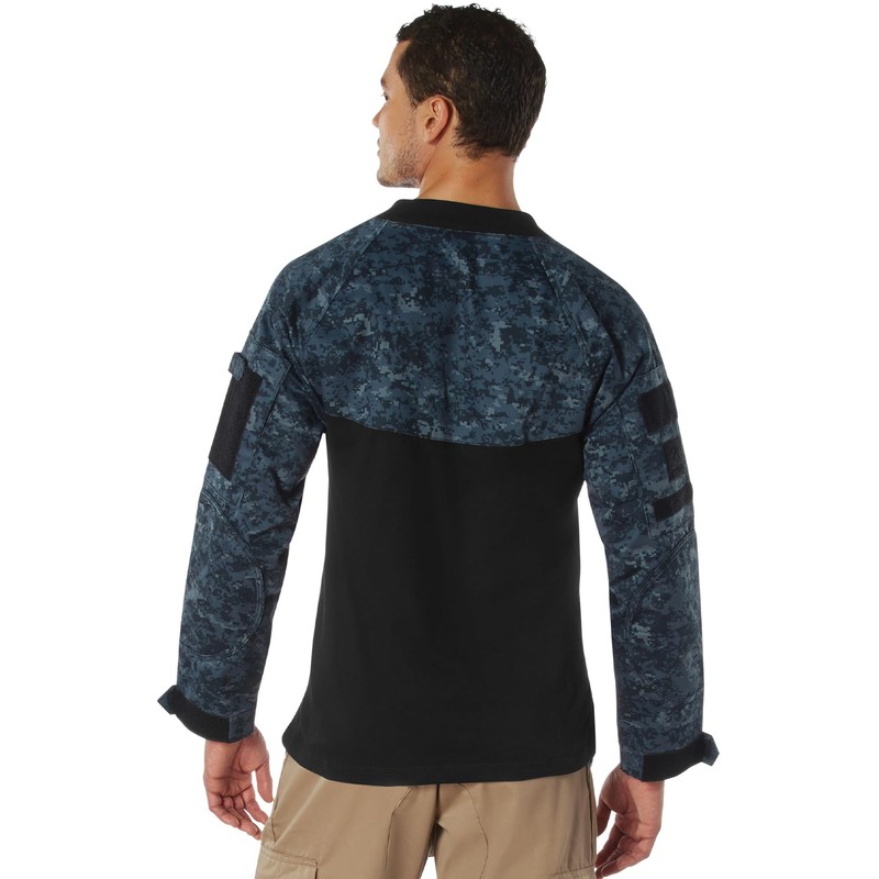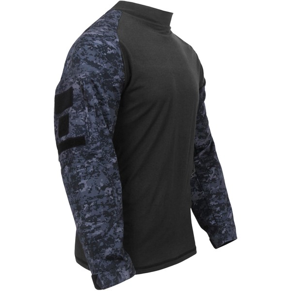 Rothco Tactical Combat Shirt, Mens Paintball Airsoft Base Layer Top, Midnight Blue Digital Camo, L