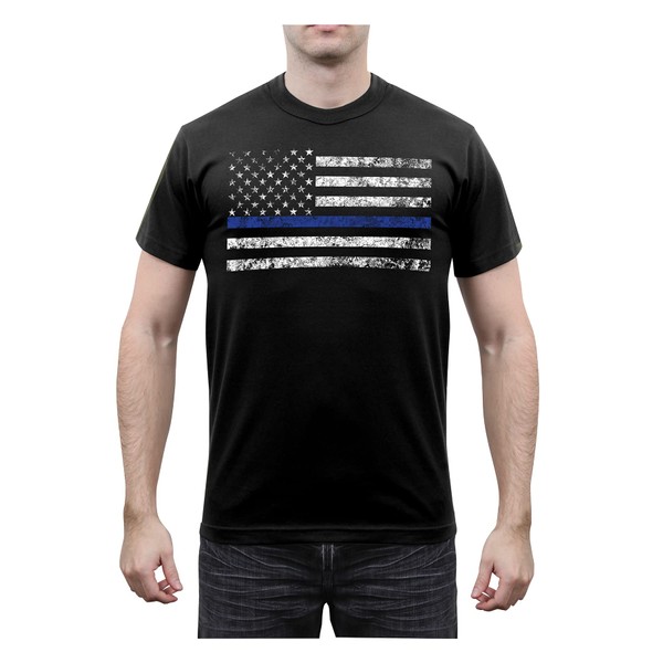 Rothco Thin Blue Line T-Shirt (US, Alpha, XX-Large, Regular, Regular, Black)