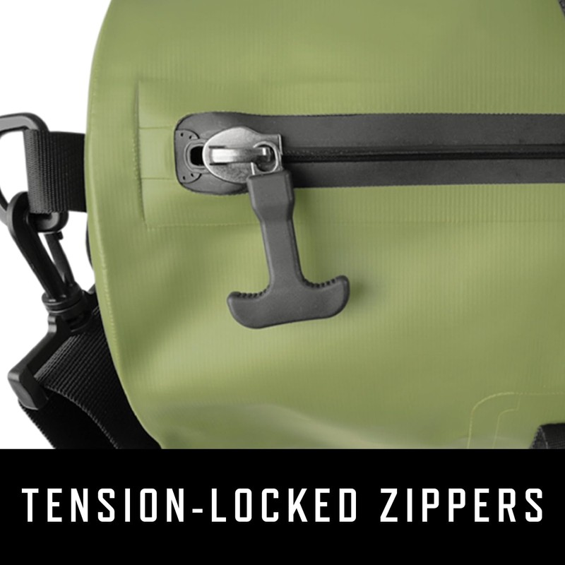 - Tension-Locked Waterproof Zippers: For optimal performance and protection, our Waveguard bags feature waterproof zippers that are designed with a secure zipper seal that increases tension. To ensure a full closure, always zip the waterproof dry bag completely to maintain waterproof performance; use the pull tabs for leverage when needed.