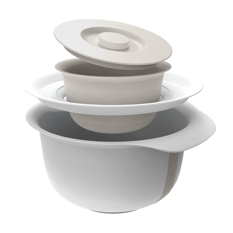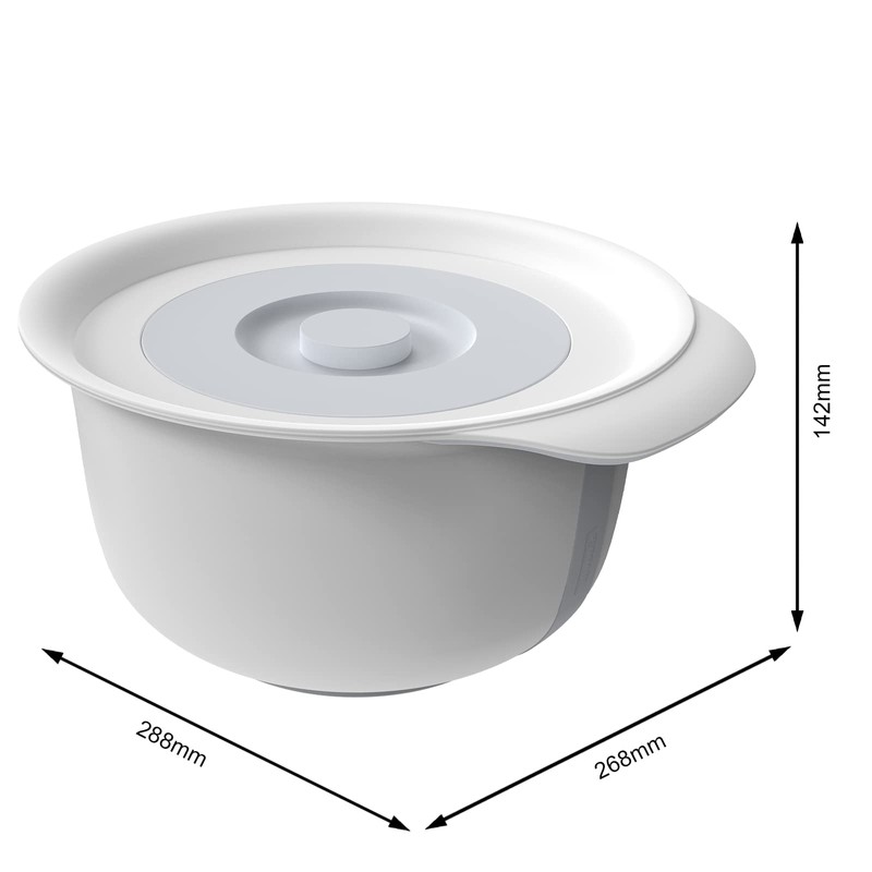 - Box contents: 1 x mixing bowl 4 litres and 1 x bowl 1.2 litres made of plastic (PP) in a set - with handle, splash guard, lid and non-slip ring on the base - dishwasher safe - BPA-free
