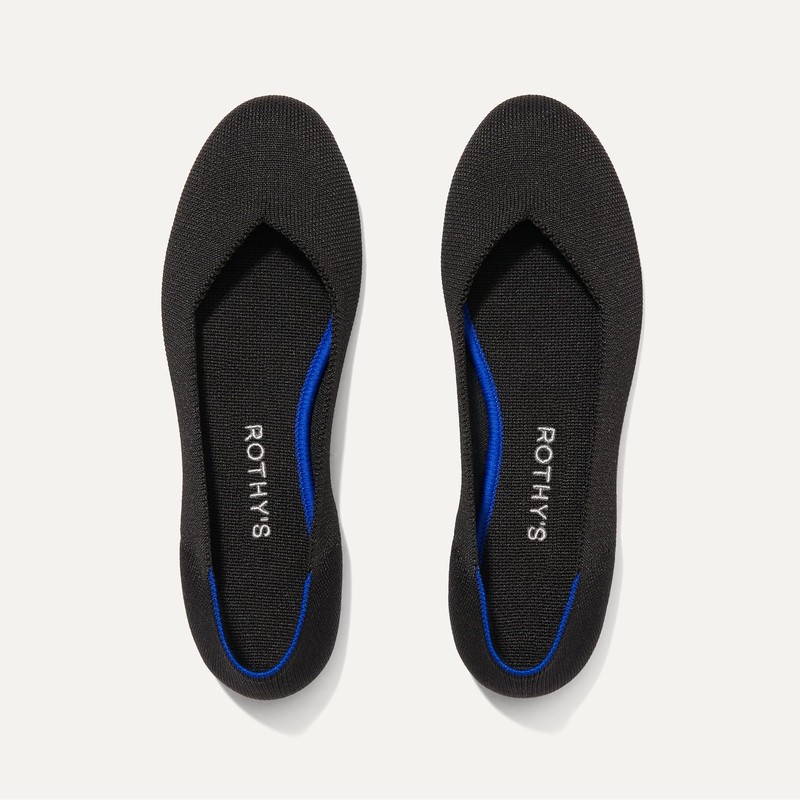 Rothy's The Flat Women's Slip-On Shoes, Classic Flats, Black, Made from Recycled Plastic Bottles & Machine Washable, Size 12