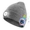 Rotibox Bluetooth Beanie with Light, Unisex USB Rechargeable 4 LED Headlamp Hat, Wireless Headphones Grey
