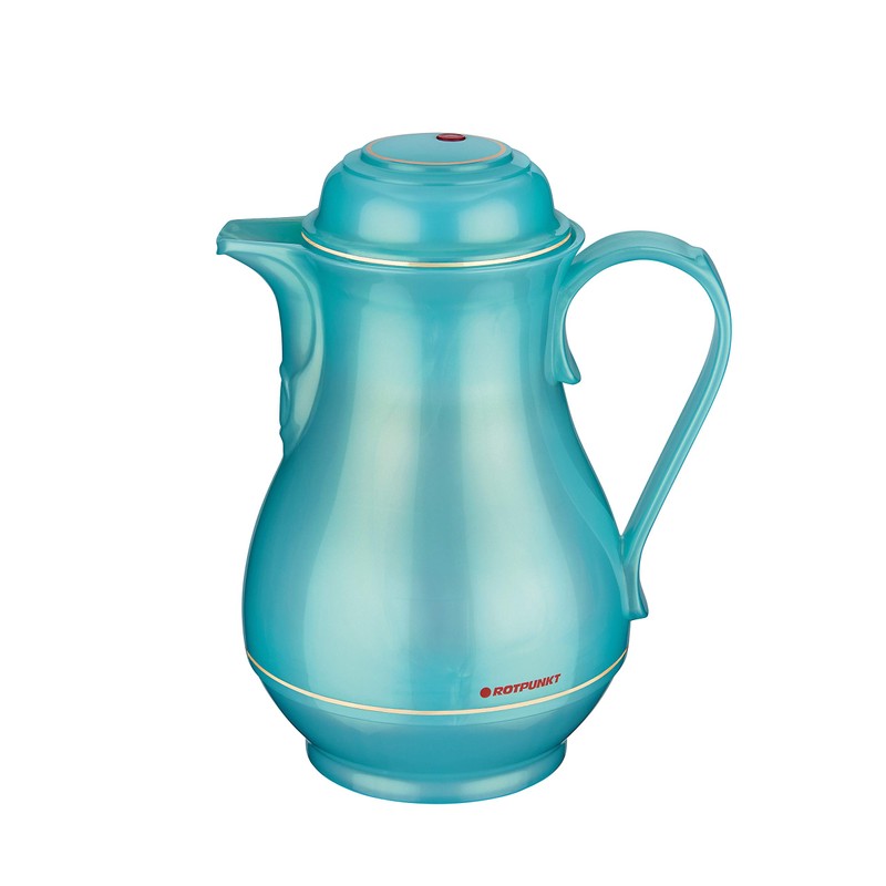 ROTPUNKT 330 Christa Insulated Jug, 1.0 L, Two-Function Screw Cap, BPA-Free, Healthy Drinking, Made in Germany, Warm and Cold, Glass Insert (Shiny Aquamarine)