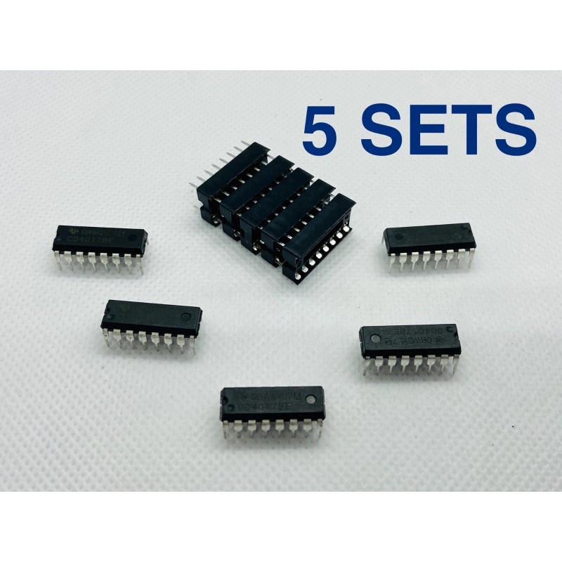 Rotus 5-10 Set CD4017 CD4017BE DIP-16 Decade Counter Divider IC with Socket Choose Qty - 5 SETS