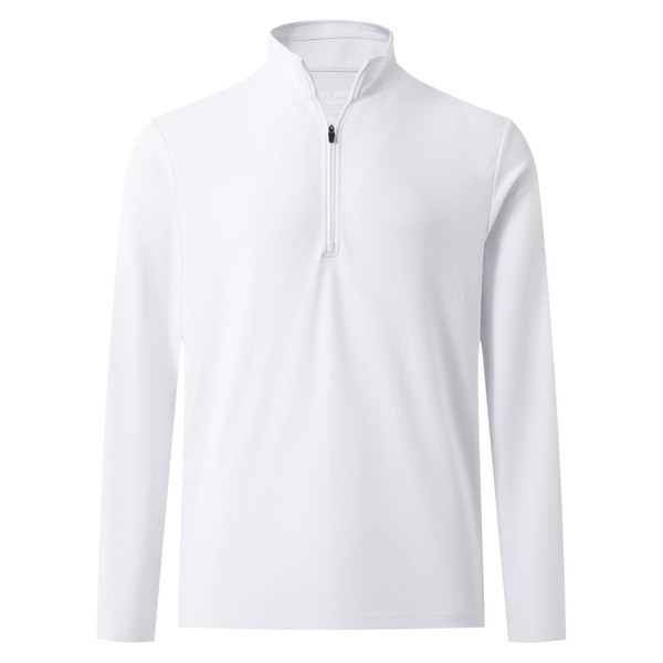 Rouen Mens Quarter Zip Pullover Performance Solid Casual Golf Long Sleeve Half Zip Pullover Sweatshirts for Men White