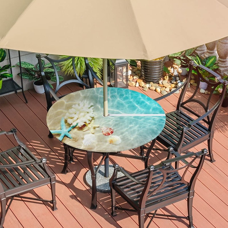 Round Fitted Tablecloth with Umbrella Hole Marine Starfish Outdoor Tablecloth Waterproof Umbrella Table Cloth Zippered Tablecloth 36"-44" Round Elastic Table Cover for Patio