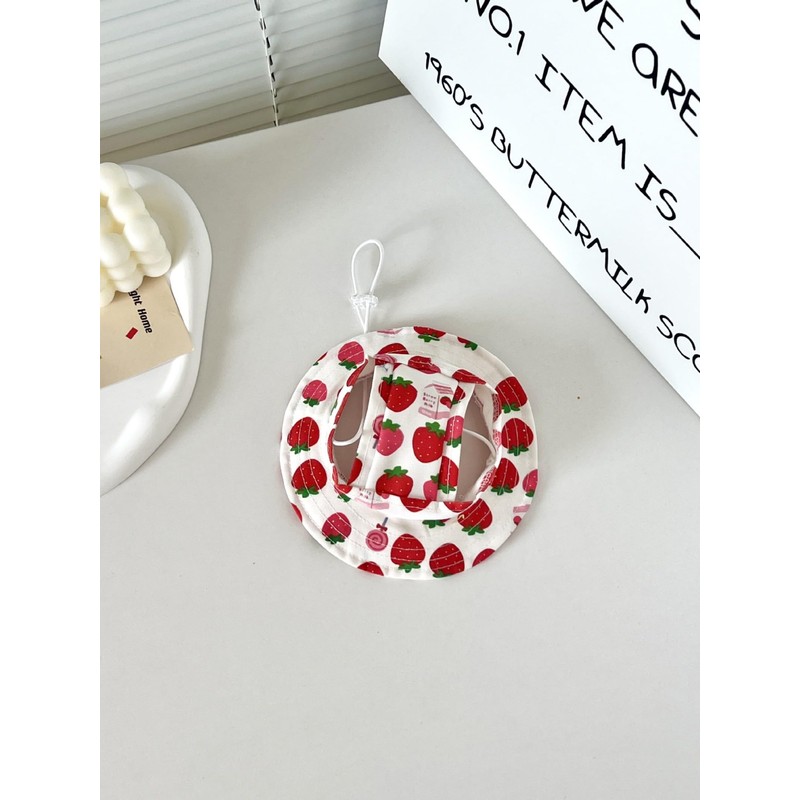 Round Hats for Small Dogs, Cats and Dogs, Fishing Hat with Ear Hole, Adjustable Pet Sun Protection, Travel Sports Hat for Cats, Small Medium Dogs, Large (Strawberry)