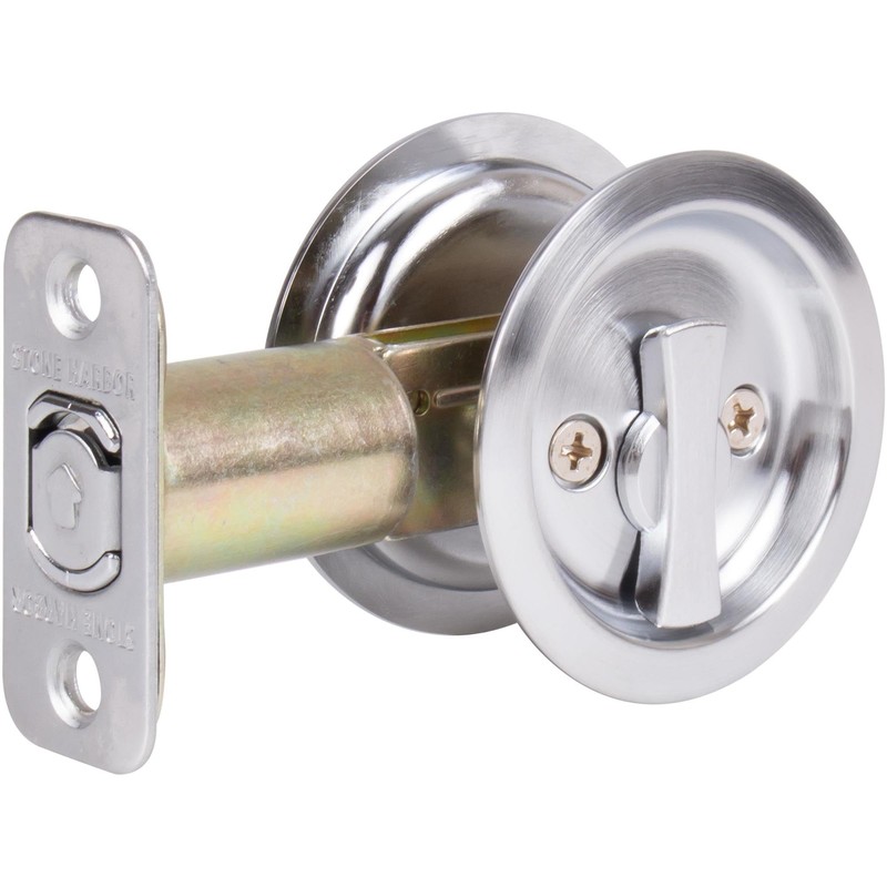 Round Pocket Door Lock, Privacy (Bed/Bath) Latch, 2-3/4" Backset, RCL, Satin Chrome by Stone Harbor Hardware